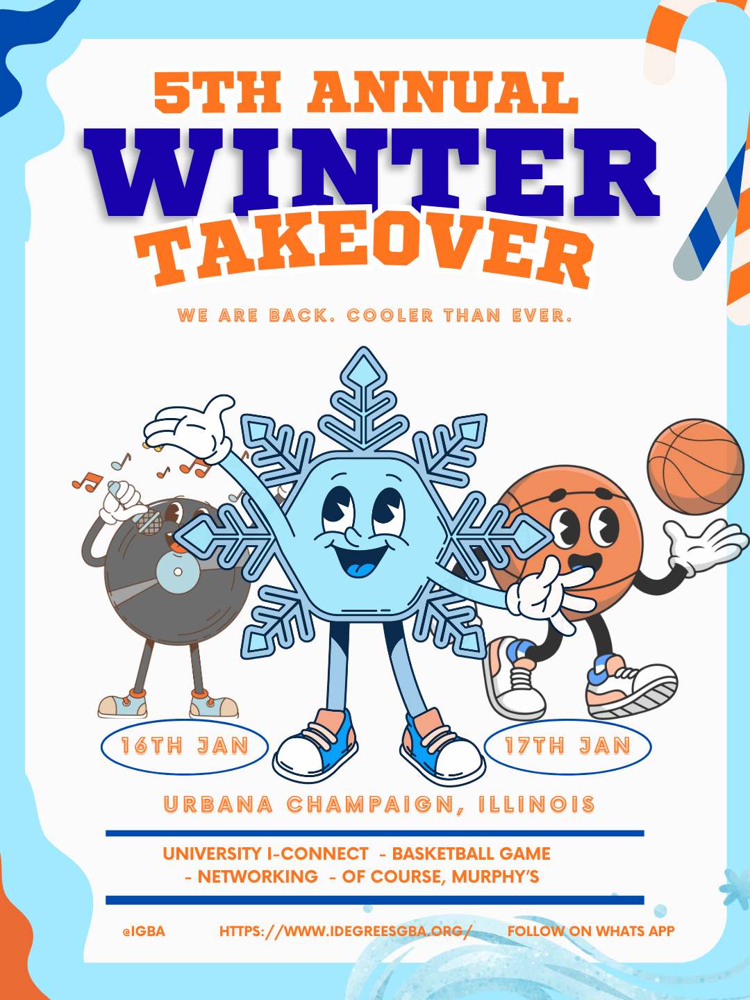 ☃️ Now in its 5th year, Winter Takeover has become the mid-year tradition for iGBA and iDegrees students - equal parts reunion, networking, and basketball. It might be cold outside, but it’s electric inside - and that’s Winter Takeover. The Fighting Illini men’s basketball team takes on the Minnesota Golden Gophers, and we’re taking over campus once again.
